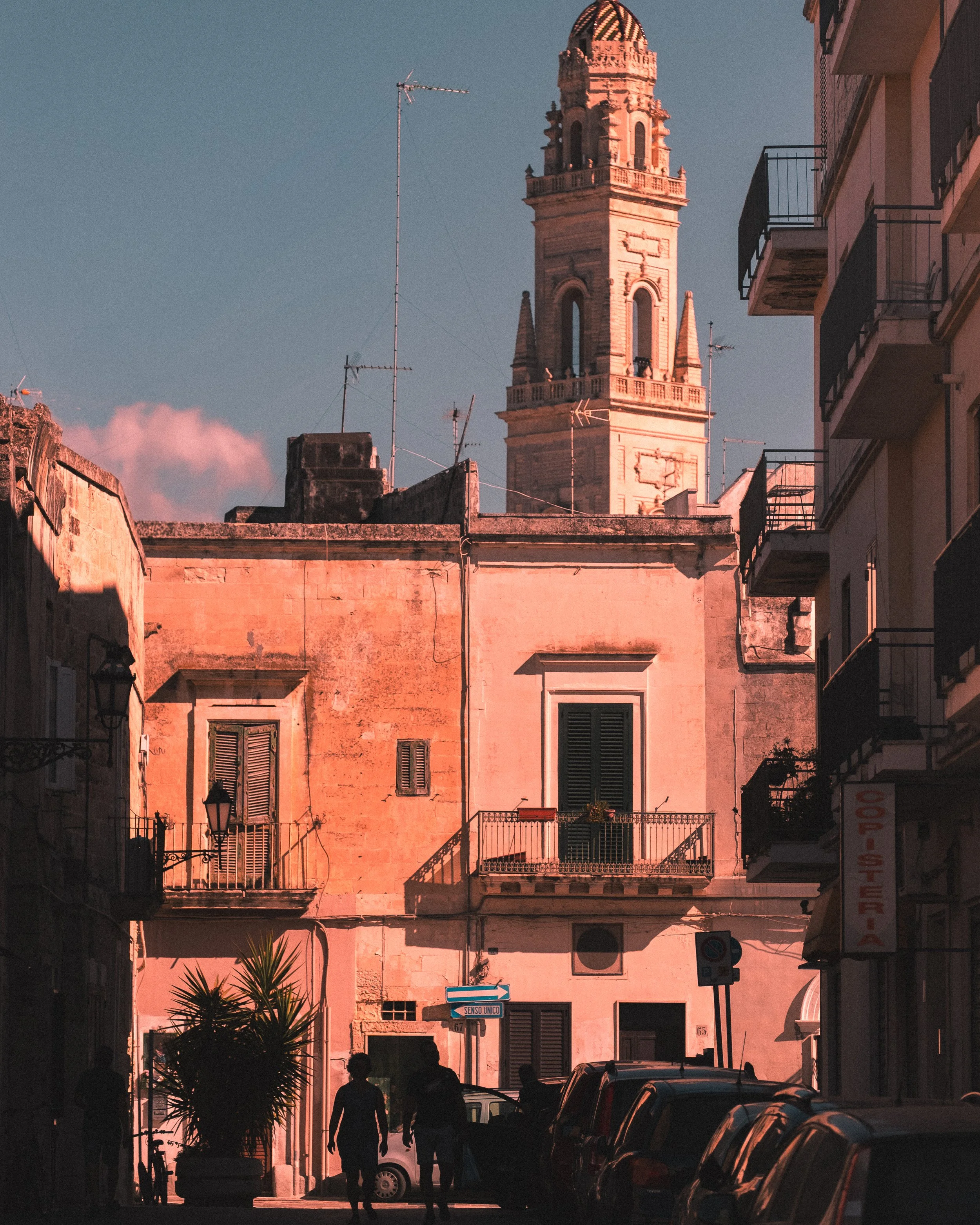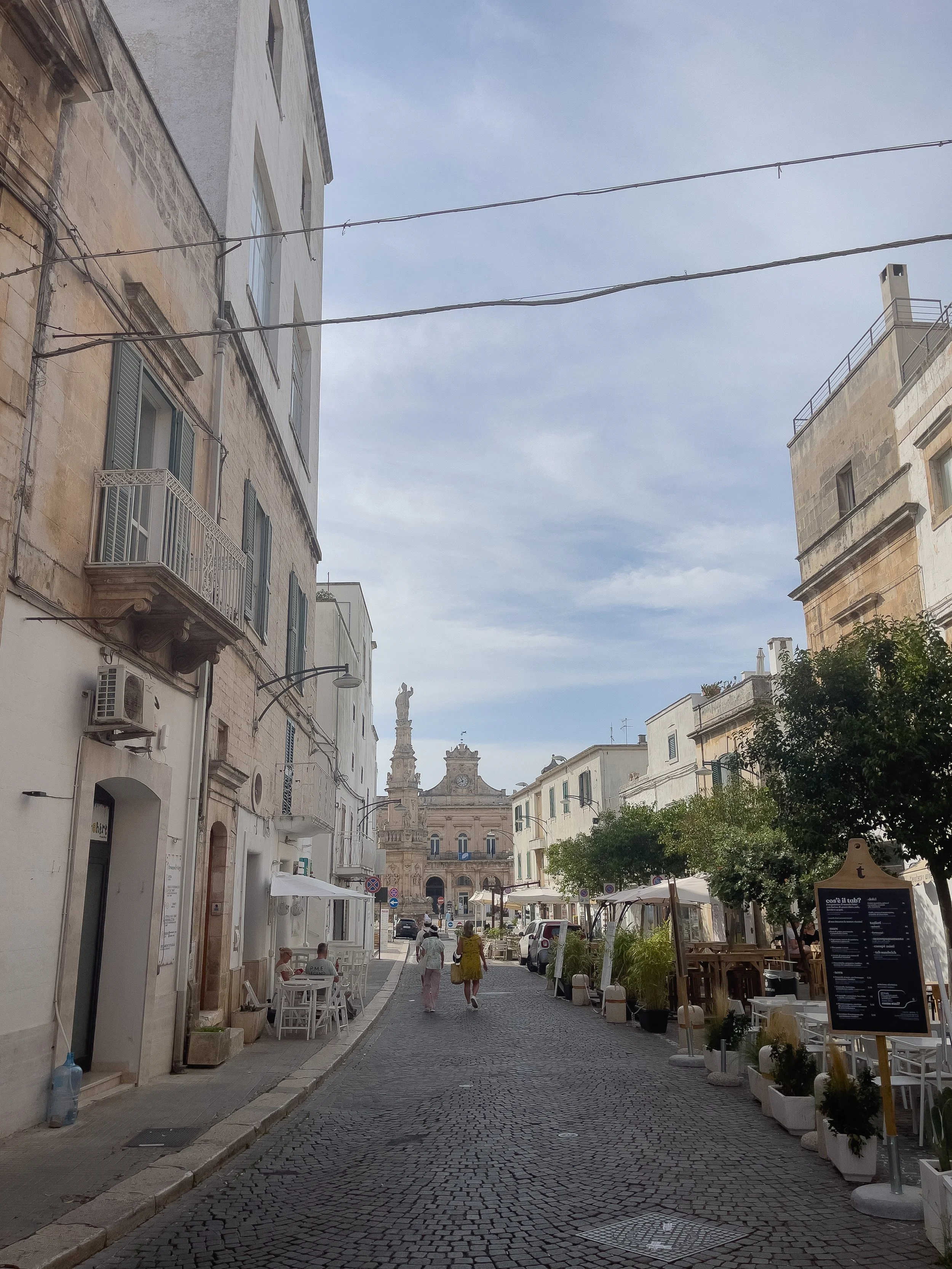 Perched high above the Valle d’Itria, Martina Franca exudes refined charm. The whitewashed lanes and grand palazzos create an elegant, airy atmosphere. Its Baroque details feel understated yet sophisticated — perfect for capturing minimal, high-contrast frames. Despite its grandeur, the town pulses with daily life: markets, cafés, and locals lingering in the shade.